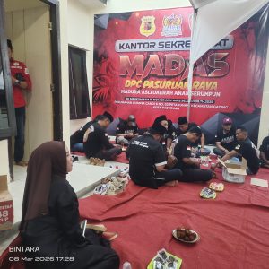 PASURUAN – Carut 3 Com.Semangat berbagi di bulan suci Ramadhan 1447 H benar-benar ditunjukkan oleh keluarga besar Ormas Madas (Madura Asli) DPC Pasuruan Raya. Di bawah komando Pak Yakin selaku Ketua DPC, organisasi ini menggelar serangkaian kegiatan positif yang mempererat tali silaturahmi antaranggota sekaligus menunjukkan kepedulian sosial kepada masyarakat.Minggu (08/03/2026)